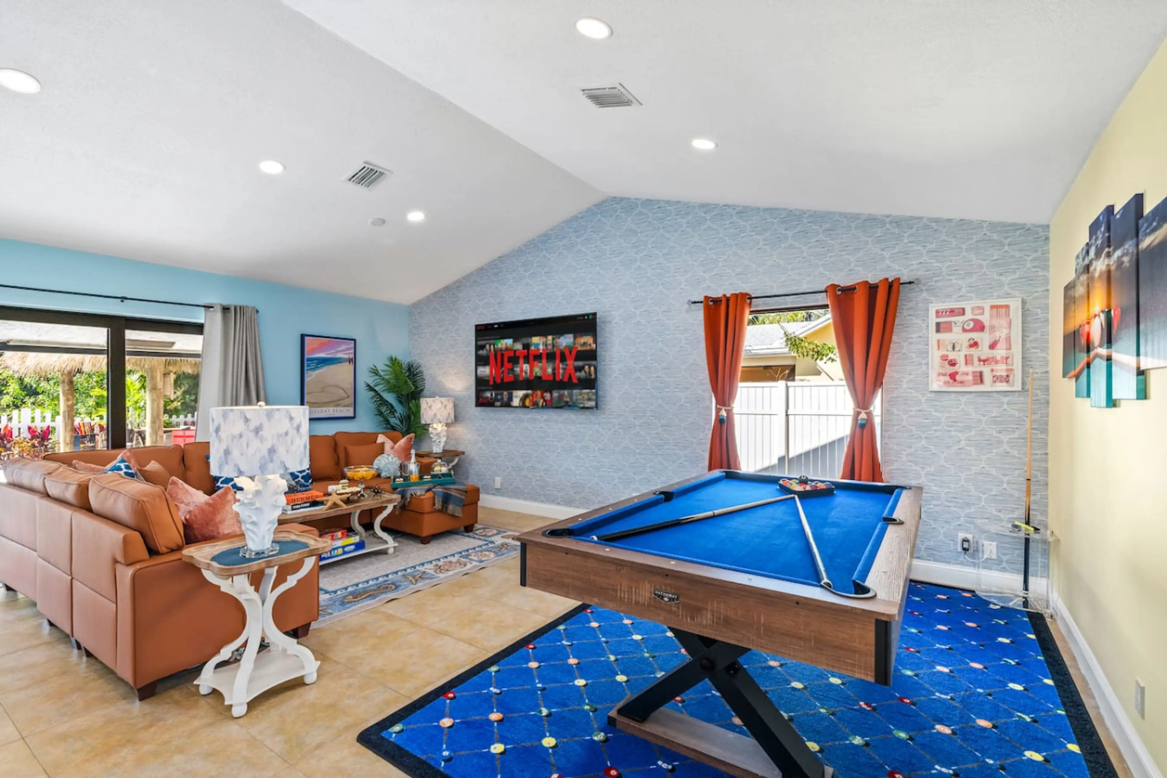 One guest called it "your own personal Margaritaville." Heated pool, tiki hut with bar, seating, dining and smart TV, putting green, cornhole, jumbo Connect Four, and billiards inside. Canal-front backyard. Vaulted ceilings. Sleeps 8. Pet-friendly. 10 minutes to Atlantic Ave. No checkout task l...